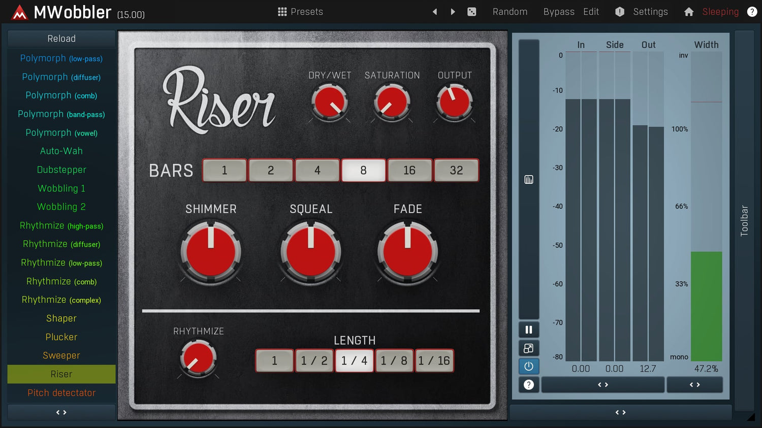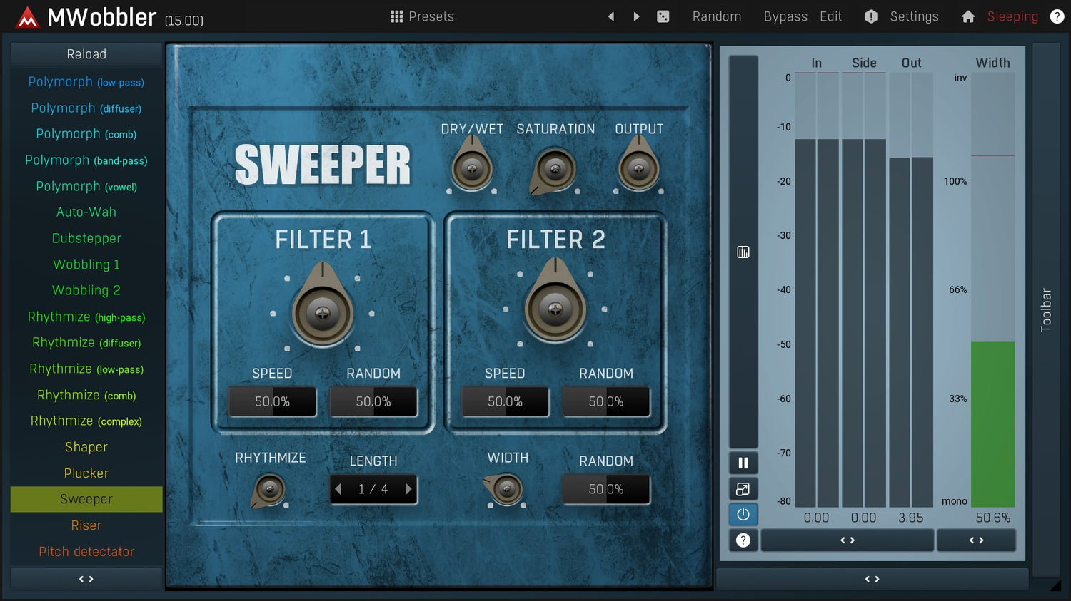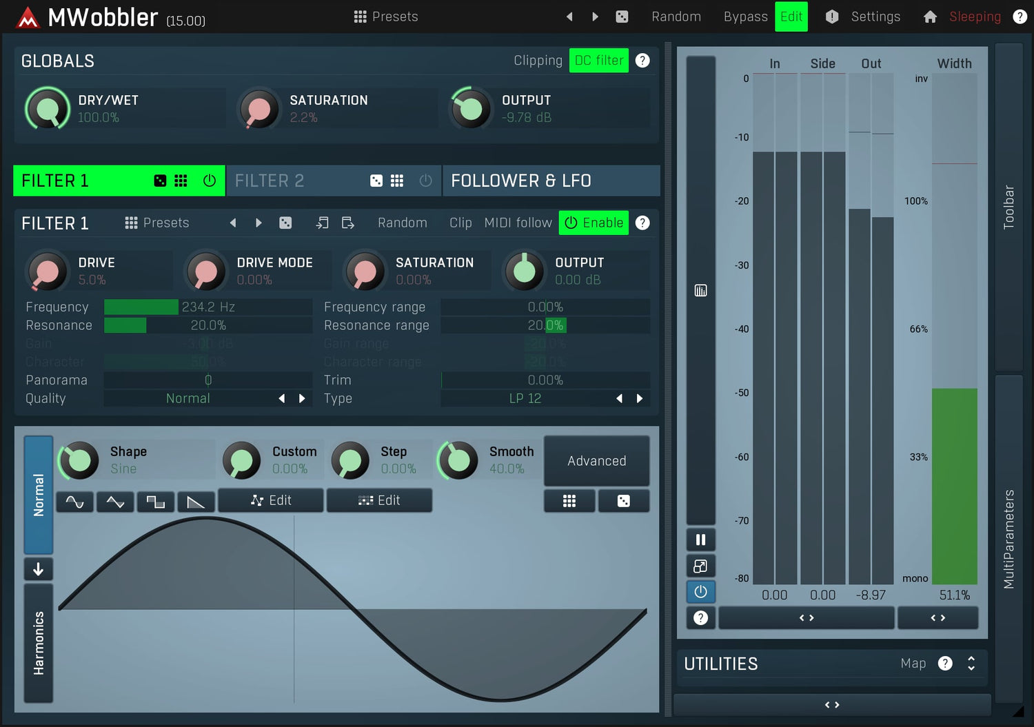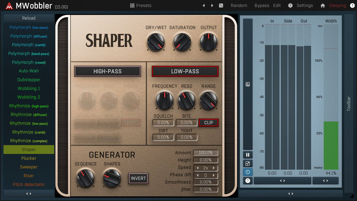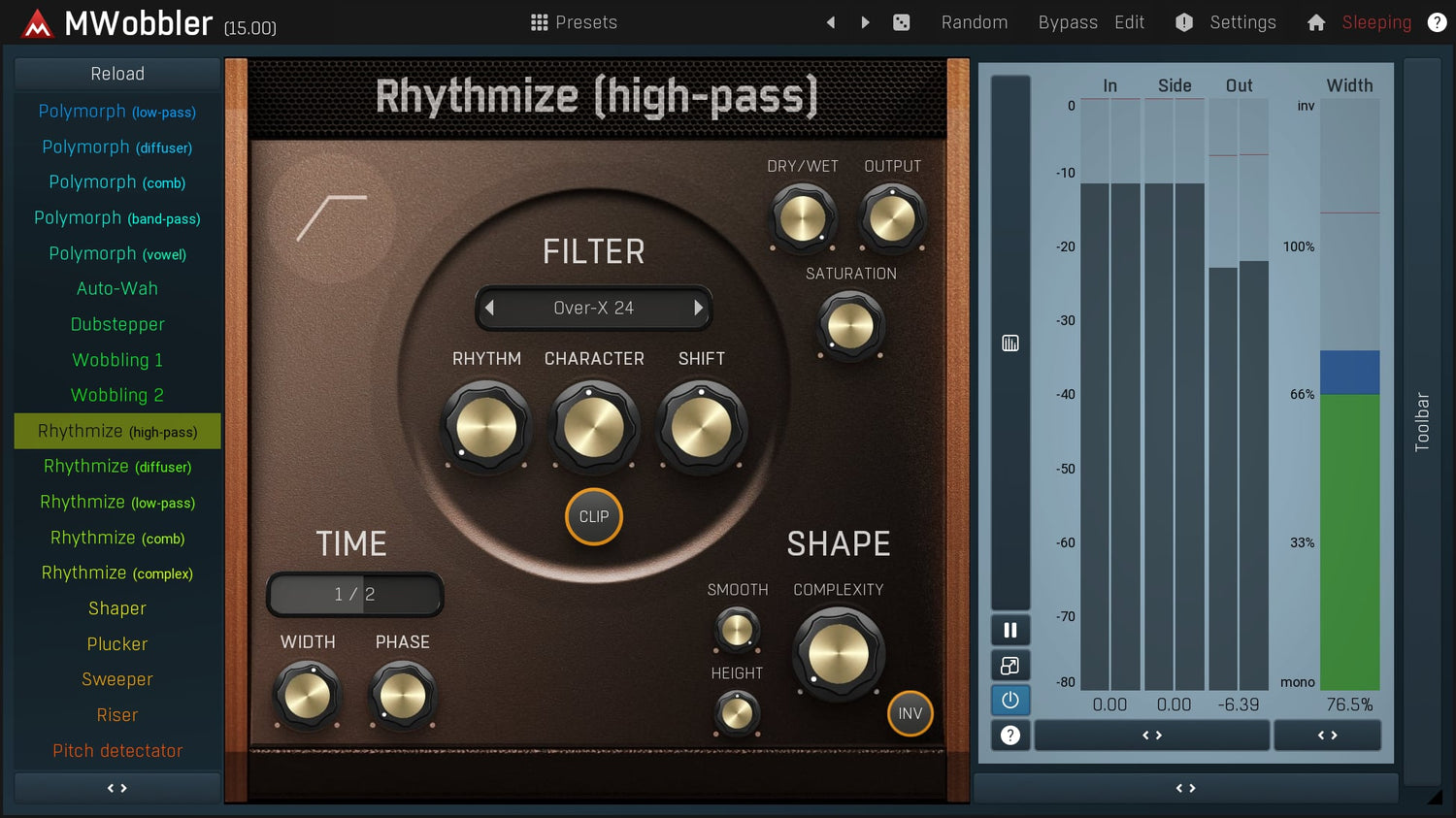 MWobbler is a unique distorting filter originally designed to produce dubstep wobbling basses, but it turns out to be a great multipurpose filter for just about any audio material from rhythmic pads, rotary organs to drum-driven basses...