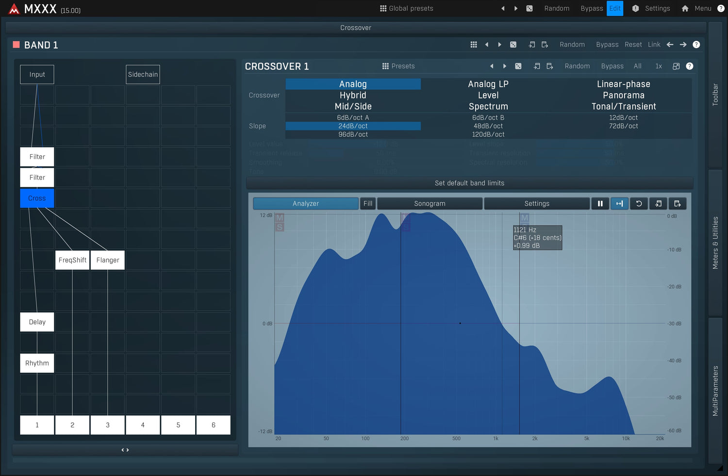 MXXX is the ultimate effect. It is a modular beast containing all our effects in a simple interface with an automatic routing matrix, super-versatile modulators and much more. It lets you do everything from simple equalization and compression to the wildest and most creative processing.