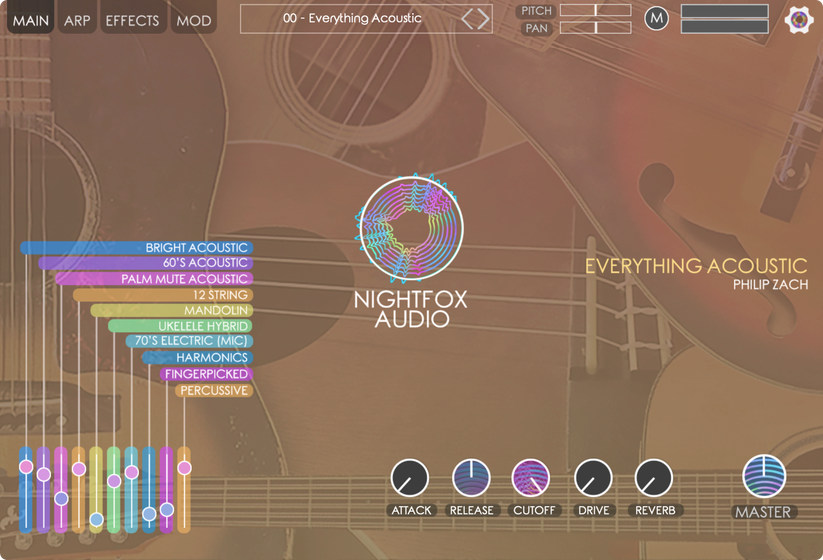 Everything Acoustic es un conjunto de 10 instrumentos acústicos únicos, grabados meticulosamente a lo largo de todo el diapasón. Guitarra acústica, mandolina, ukelele, ukelele barítono, guitarra acústica punteada, 12 cuerdas, y más. Se siente auténtico, con el zumbido de trastes y las irregularidades sonoras intactas, son instrumentos reales en espacios reales con toda la funcionalidad de un sintetizador con efectos completos.