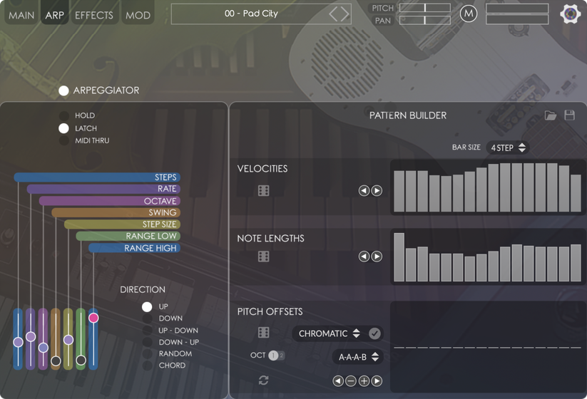Pad City se puede usar de manera simple, una nota a la vez para agregar espacio y textura, o se puede usar con acordes completos para dar una profundidad emocionante a tus mezclas y partituras.