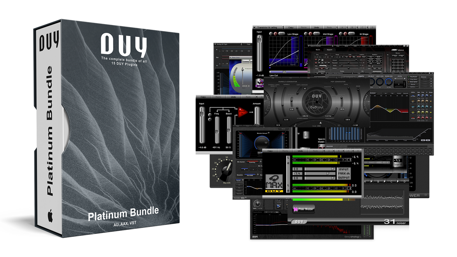 Este paquete incluye los 16 fantásticos plug-ins de alta calidad de Duy, para formatos AAX, Audio Units y VST de 64 bits...