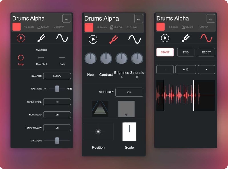 • Play fully-synced video samples : link audio samples to video pads • Modular grid: up to 8×8 pads • Import your own video & audio samples onto the grid • Audio editor: quantize, gain, mute audio • Video editor: hue, contrast, brightness, saturation, key, position and ratio • Picture control: video projection mapping & master video editor • Direct output to a secondary screen for live performance • Record your performance live in high-quality MP4 video