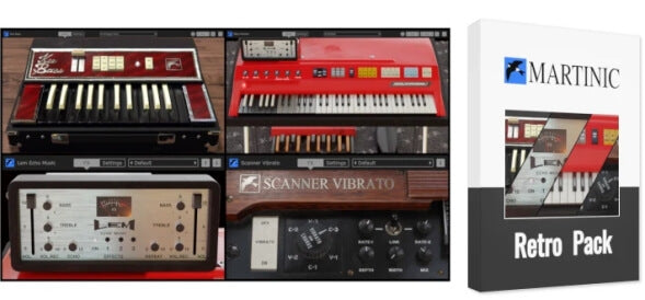 El Retro Pack ofrece precios especiales de paquete para los 4 plugins de instrumentos vintage y fx originales ofrecidos por Martinic.