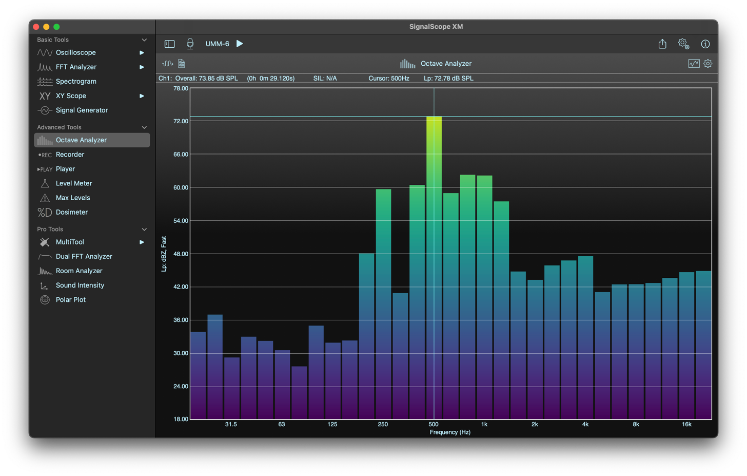 - Analyze signals coming from any available audio input device connected to your Mac.