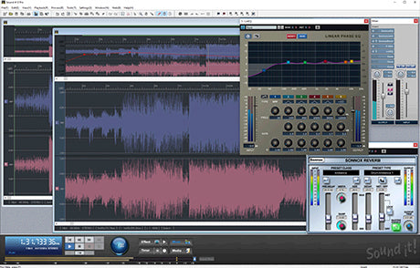 Sound it! viene con tres tipos de plug-ins de restauración de Sonnox, De-Noiser, De-Clicker y De-Buzzer que pueden eliminar con precisión clics, crujidos y zumbidos. Los plug-ins de Sonnox son utilizados por profesionales en todo el mundo para mezclar y masterizar música, cine, televisión, radio y sonido en vivo.