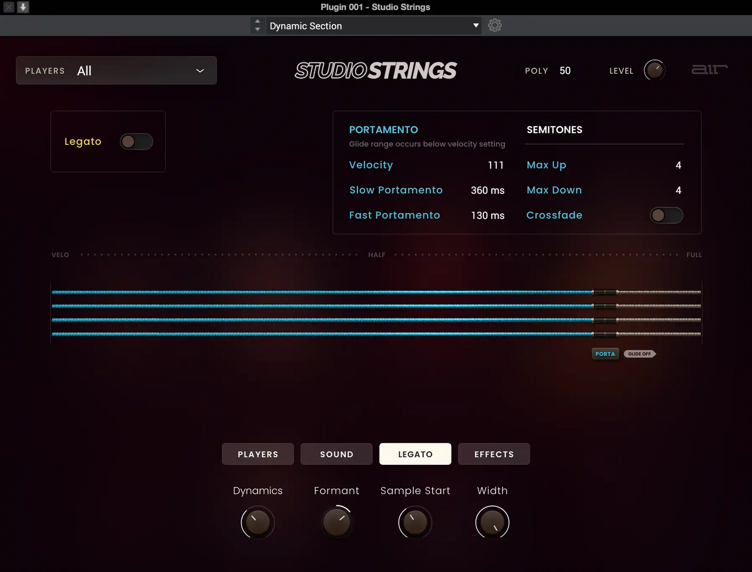 When using Studio Strings, you can choose between instrumentation options that open up endless possibilities for sound crafting. The four included models, coupled with various articulations, give you an entire orchestra at your fingertips.