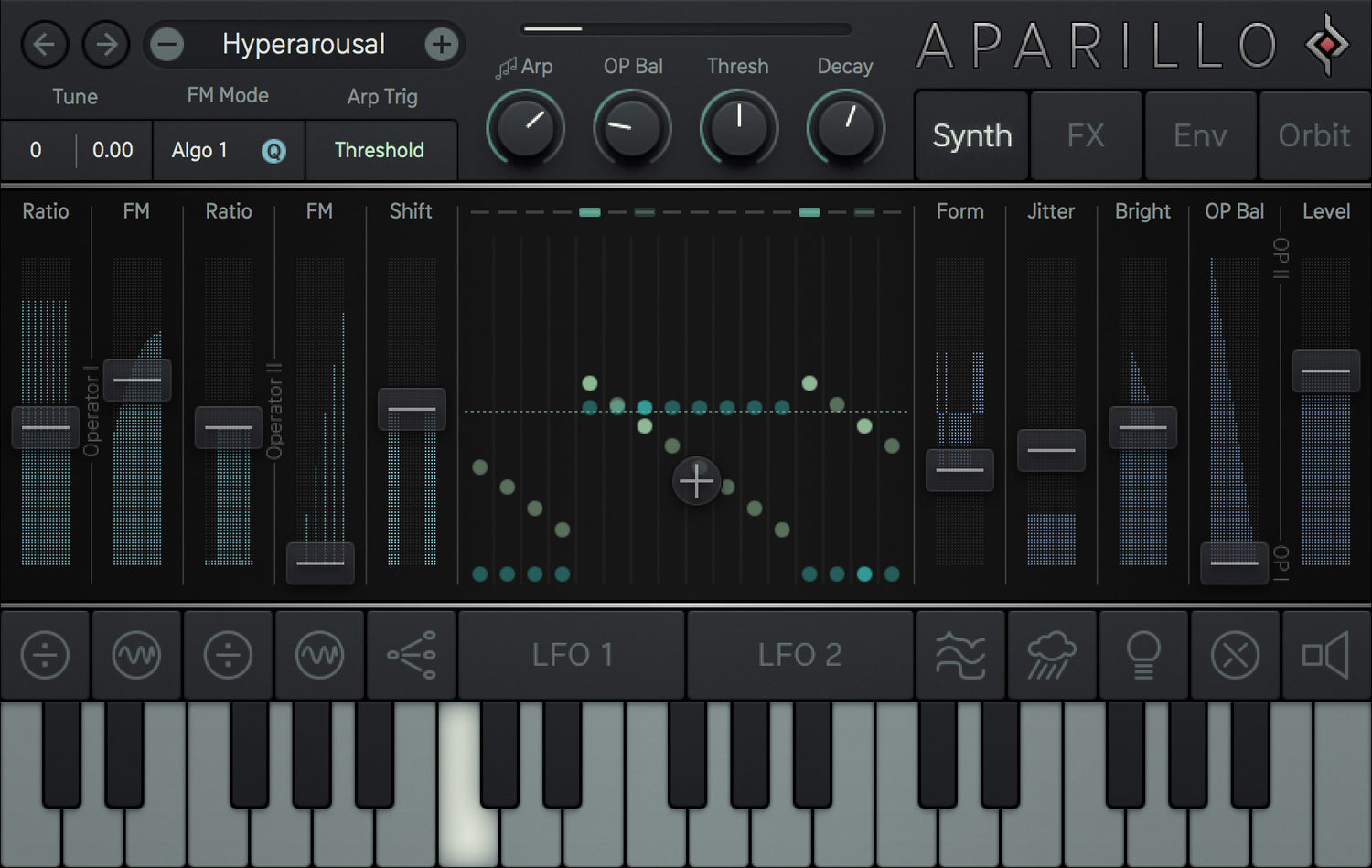 Aparillo es un sintetizador FM avanzado de 16 voces, diseñado para majestuosos movimientos sonoros. Un ingenioso arreglo de síntesis, modelado de ondas, filtrado, FX y modulación se despliega en una herramienta de diseño de sonido seria para la creación épica de sonidos. Asegúrate de revisar el Orbiter, un controlador de masas para temas de sonido blockbuster inmediatos e instantáneos.