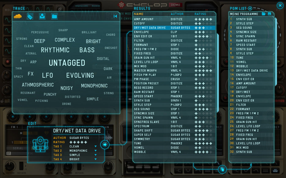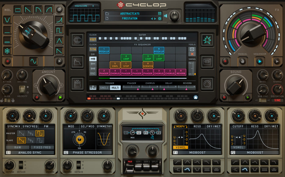 Monofónico, crudo y increíblemente versátil. Cyclop está lleno de herramientas para el bajo del futuro y más allá. Wobble Knob, FX Sequencer y un motor de sonido hilarantemente versátil te brindarán una alegría interminable.