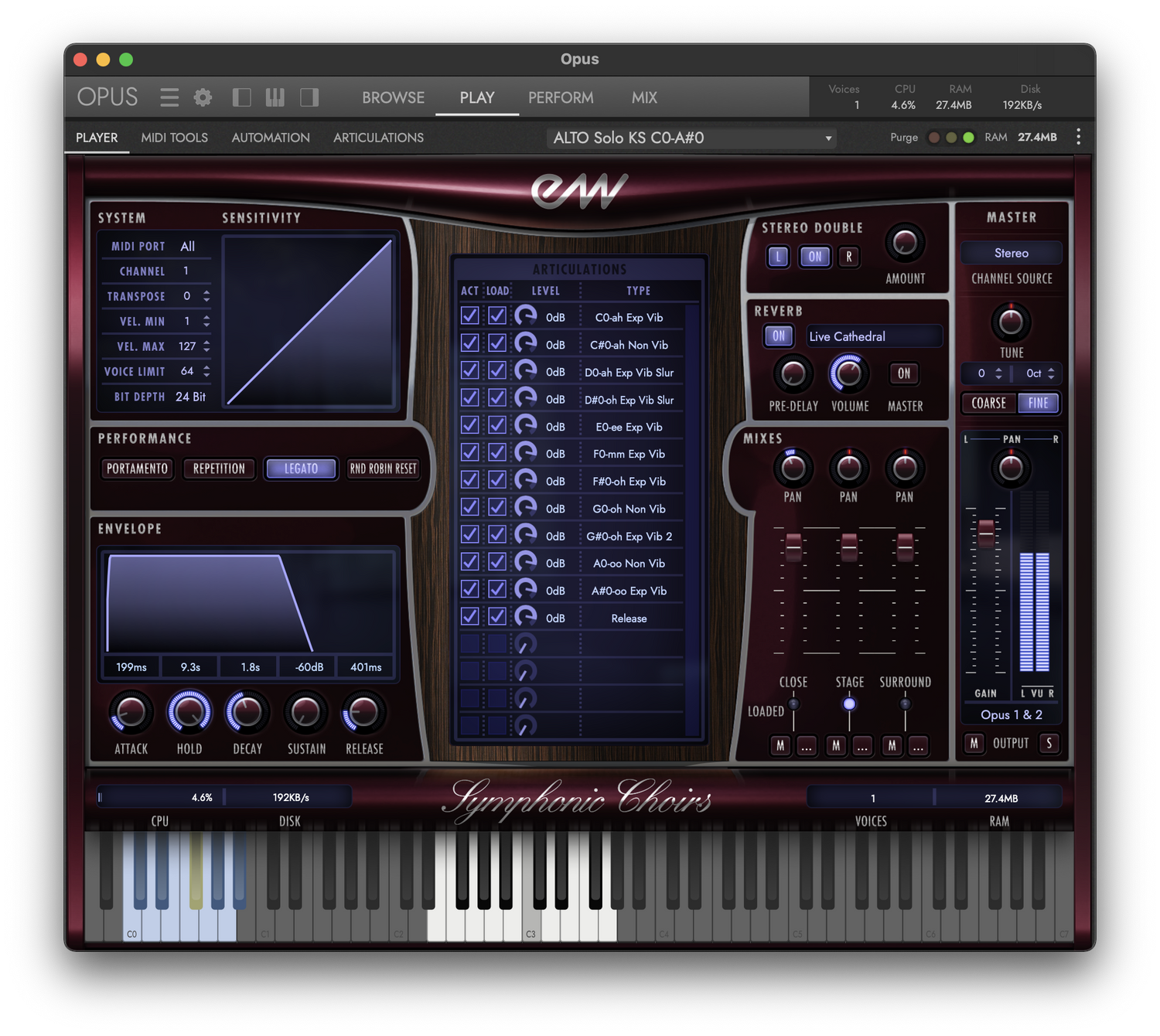 - Convolution includes hall choir was recorded in for additional control of hall ambience