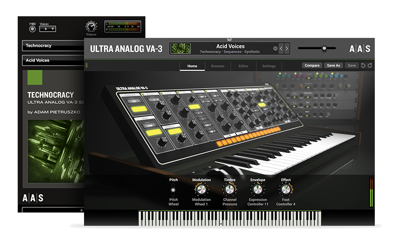 Technocracy is a sound bank for the Ultra Analog VA-3 synthesizer and AAS Player plug-ins in collaboration with AAS newcomer, sound designer Adam Pietruszko.