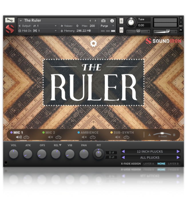 The Ruler incluye más de 24 articulaciones jugables, 20 presets de FX personalizados, 20 ambientes diseñados sonoramente, 4825 muestras estéreo y un gigabyte completo de contenido.
