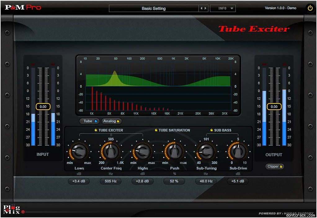 Plug-in'en indeholder Tube Exciter, Tube Saturation og Sub Bass enhancers, som kan berige din lyd på både subtile og drastiske måder.