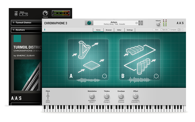 AAS sound designer newcomer Emeric Zubar a.k.a. BLAKE presents Turmoil District—a collection of 101 presets exhibiting the emotional and ominous side of Chromaphone. Turmoil District gets you everything you need to explore the dark and sad atmosphere of Trap, Cloud Trap, RnB, Hip Hop, and even ambient music. While being sonically rich-sounding, this sound pack highlights the dreamy and haunting vibe needed for those genres. With its vast collection of kicks, snares, basses, hi-hats, pads, and keys. Turmoil District's presets are specifically designed to create vibrant beats and take your music to its climax.