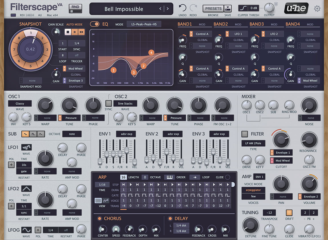 Publicada originalmente en 2004, Filterscape fue el primer plugin multiplataforma y multi-formato de u-he. Un hito importante para u-he como marca, rápidamente se convirtió en un elemento básico en el arsenal de muchos músicos. Ahora, actualizado con tecnología moderna y listo para las tareas del mañana, una vez más mostramos nuestro compromiso de mantener nuestra línea de productos. Filterscape puede haber sido pasado por alto en los últimos años, ¡pero ya no!