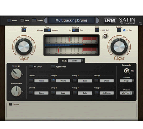 - Service panel: Controls for hiss, wow and flutter, bias, head gap, azimuth, saturation, high frequency compression and more