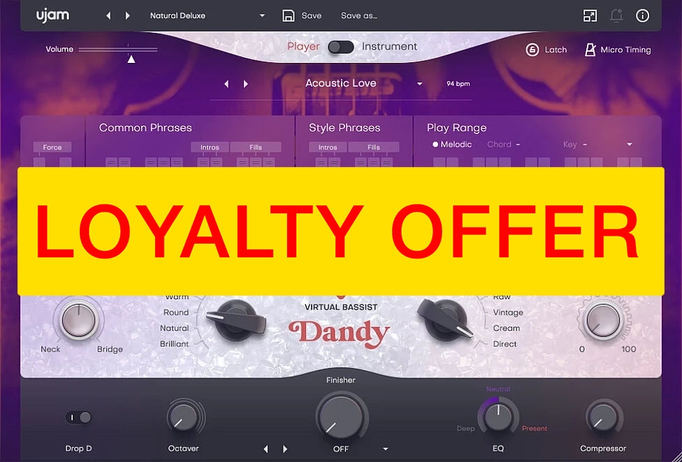 DANDY es perfecto para todos los productores de todos los niveles de habilidad. Los controles infalibles aseguran que los principiantes obtengan resultados que suenan geniales y que no suenan como bucles repetitivos enlatados. Los tecladistas hábiles pueden eludir fácilmente las características del músico virtual y tocar las partes de bajo exactamente como les gusta. ¡Todos obtienen un gran bajo en sus producciones!