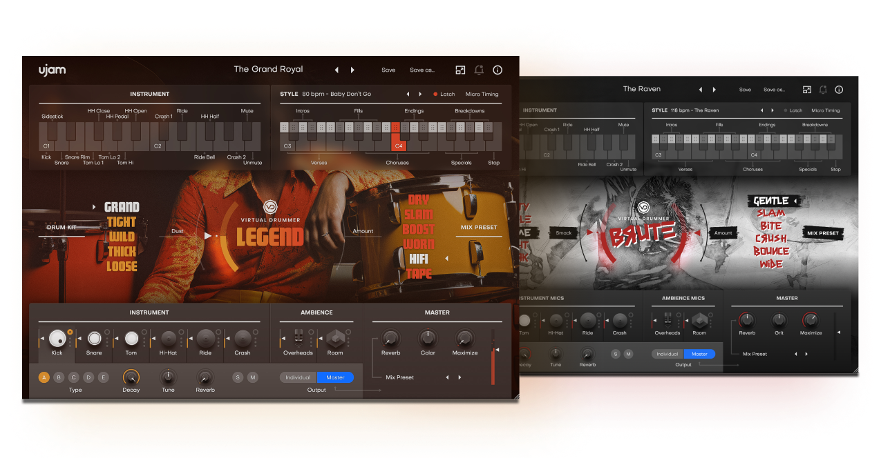 Genera emoción con los sonidos de rock clásico de Virtual Drummer LEGEND o produce ritmos pesados con Virtual Drummer BRUTE. Ambos ofrecen grooves auténticos de calidad de estudio en segundos.