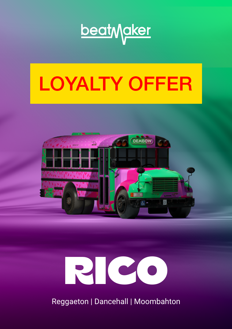 El creador de ritmos RICO ofrece los ritmos característicos del Reggaetón, Dancehall y Moombahton. Percusión ajustada, cajas de ritmos sincopadas y bombos contundentes que traen el calor.