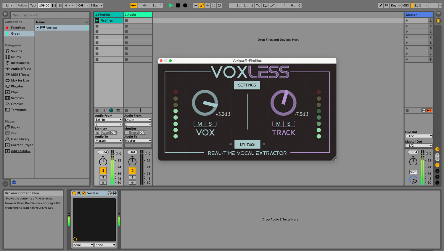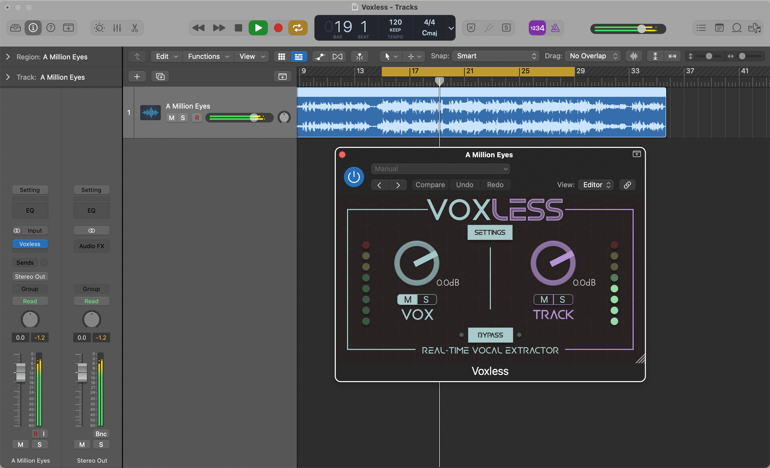 VOXLESS es una herramienta potente que funciona como un vocal remover altamente eficaz, permitiéndote eliminar las voces de una canción con facilidad en tu DAW.