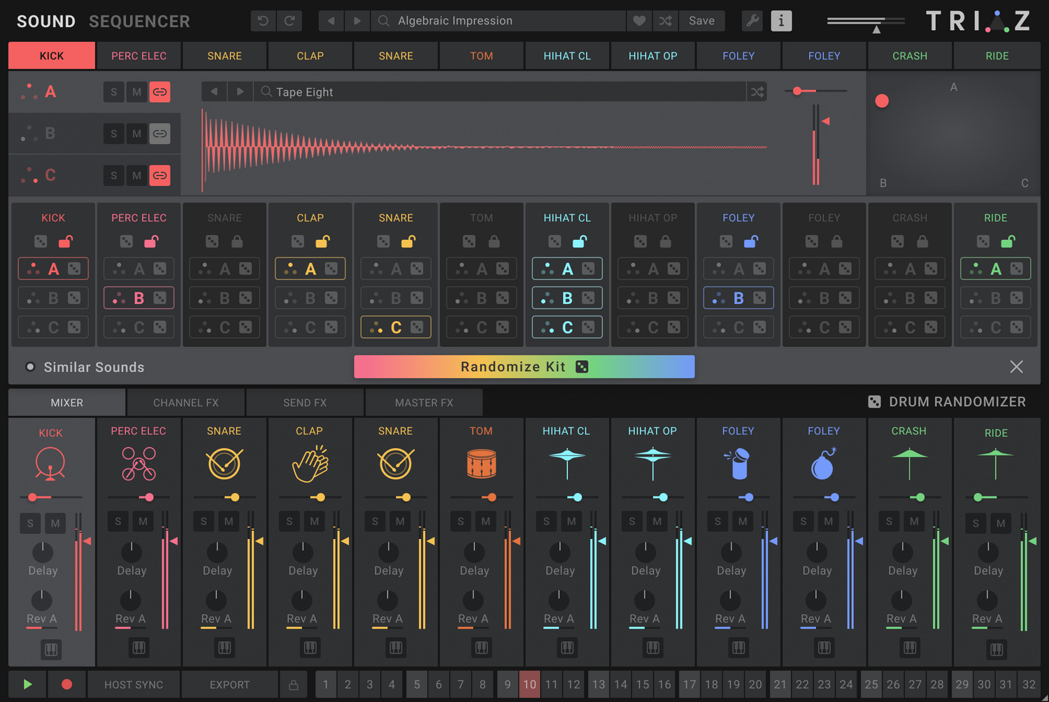 Ya sea que estés esbozando ideas o creando grooves complejos, Triaz fue diseñado para fluir con tu creatividad, no para luchar contra ella. Cada característica está construida para velocidad, flexibilidad e inspiración:
