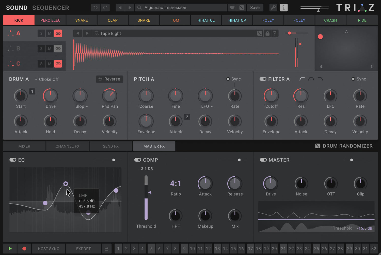 Con un diseño inteligente, libertad creativa y un flujo de trabajo ultrarrápido, Triaz no es solo un plugin de batería: es tu nuevo compañero creativo.