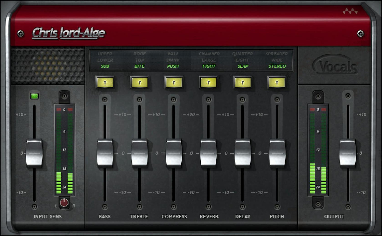 El uso experto de la compresión por Chris Lord-Alge es legendario, y se refleja en las tres variaciones de compresión. Usa PUSH para impacto, SPANK para golpear más fuerte, o WALL para comprimir la voz al máximo.