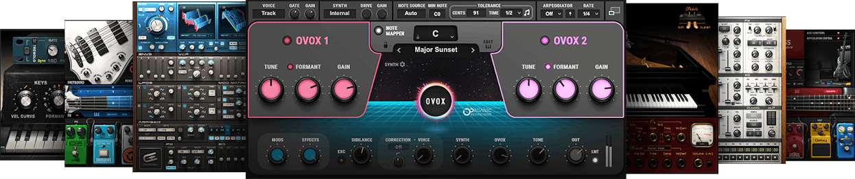 Con Ovox, tu voz puede generar acordes, armonizar, vocodar, sintetizar, re-tunar, arpegiar, modular, activar instrumentos MIDI, hacer diseño de sonido, y más. No hay nada como OVox para voces.