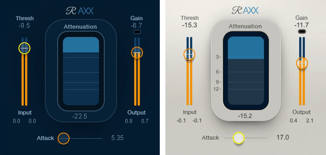 Así que, bienvenido a Renaissance Axx—que optimiza los parámetros “bajo el capó” para instrumentos de cuerda y sonidos similares como sintetizadores pulsados. El resultado: Facilidad de uso, con el hermoso sonido de la compresión de estudio de alta gama.