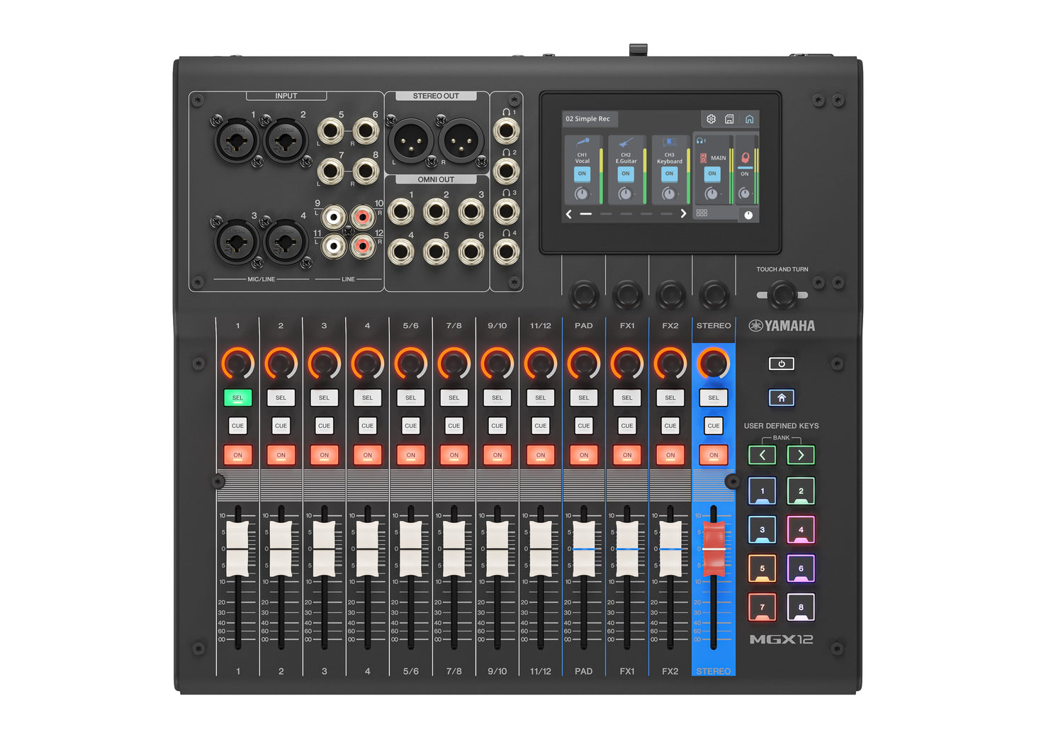 MGX12 es una mezcladora digital compacta que se basa en el legado de la serie MG de Yamaha - ahora con control táctil, seguridad de ganancia inteligente y enrutamiento flexible para en vivo, instalación y streaming/grabación.